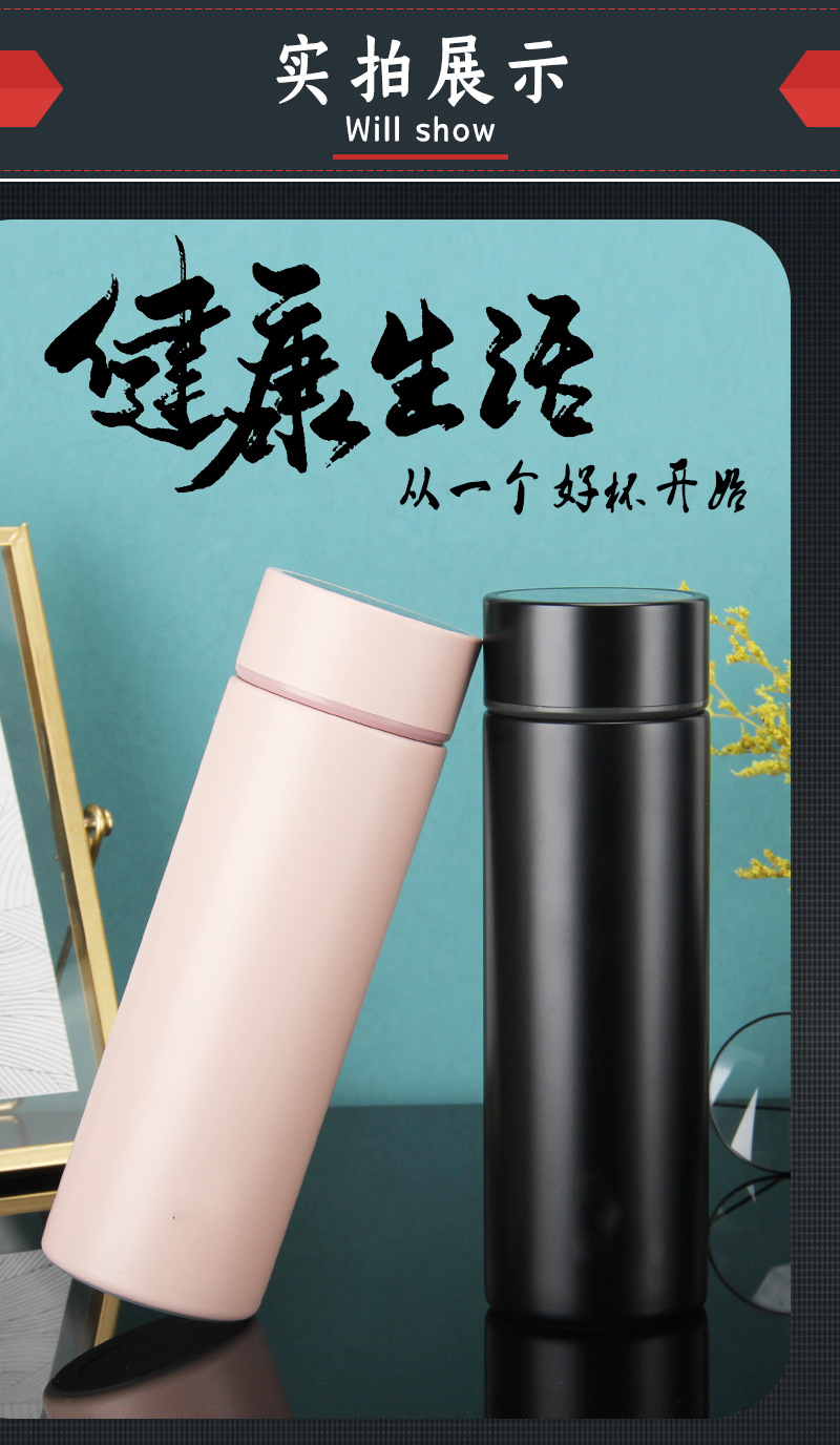高真空旋薄镜面内胆316材质温度显示保温杯同学礼品水杯